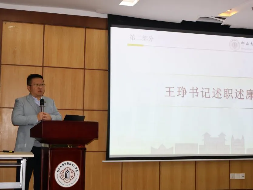 随后,系党委书记王琤作个人述职述廉报告,全面汇报了2025年度中文系党建工作情况及财务等重点工作落实情况。报告系统梳理了全年党建工作取得的显著成效,从深化政治理论学习、扎实推进主题教育、狠抓巡视整改落实、强化基层党组织规范化建设、推动党建工作与教学科研业务深度融合等多个维度,详细阐述了工作举措、进展成效与经验启示,为下一步持续提升党建工作质量、引领中文系事业高质量发展奠定了坚实基础。