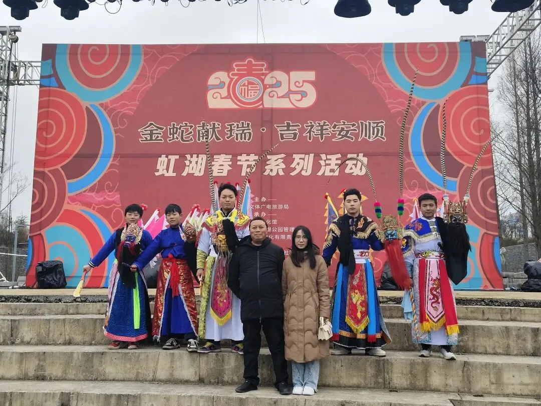 2025年春节期间,协会组织会员积极参与虹湖系统非遗活动,用极具特色的地戏表演为新春佳节增添浓厚民俗氛围。在元宵佳节,还参与了“百堂地戏闹元宵”活动,通过多场次地戏巡游、展演,让群众在喜庆祥和的氛围中感受非遗文化魅力,进一步拉近了地戏文化与大众的距离。