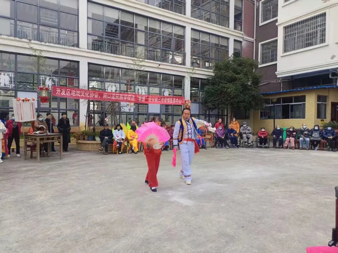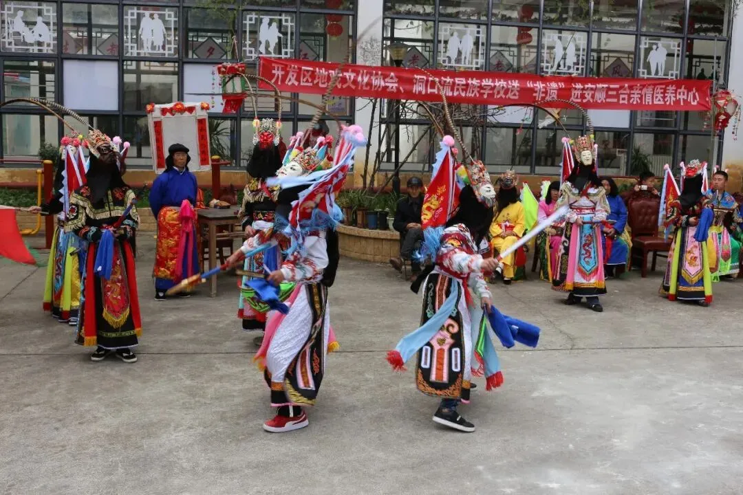 11月23日,协会联合开发区洞口流民族学校开展“地戏暖桑榆 文化润人心——非遗走进安顺三合亲情医养中心专场活动”。活动通过地戏表演、文化互动等形式,为医养中心的老人们送去温暖与欢乐,让非遗文化浸润老年群体,实现文化传承与公益服务的有机结合。