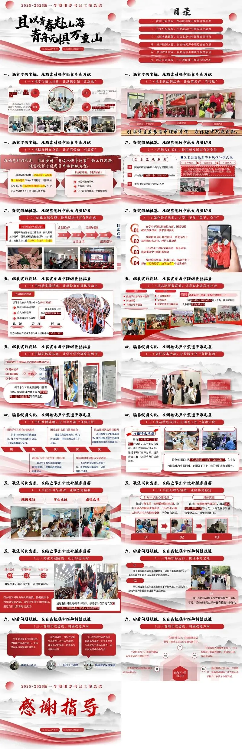 >2025-2026第一学期团委书记工作总结:且以青春赴山海,青舟无惧万重山 word版+PPT
