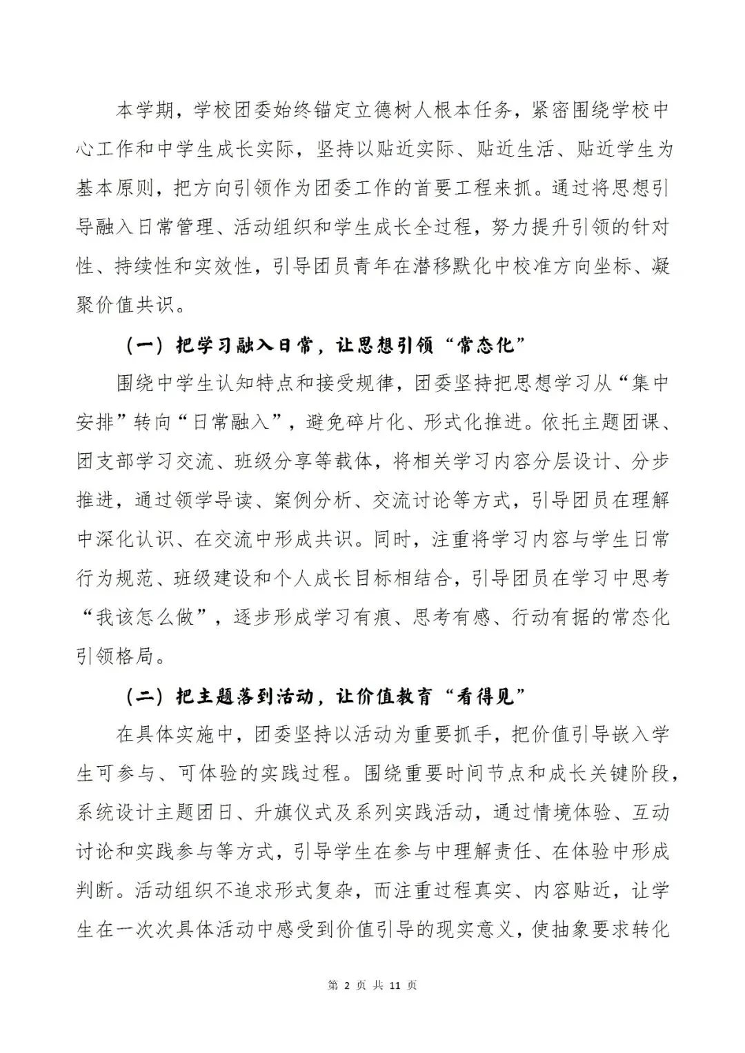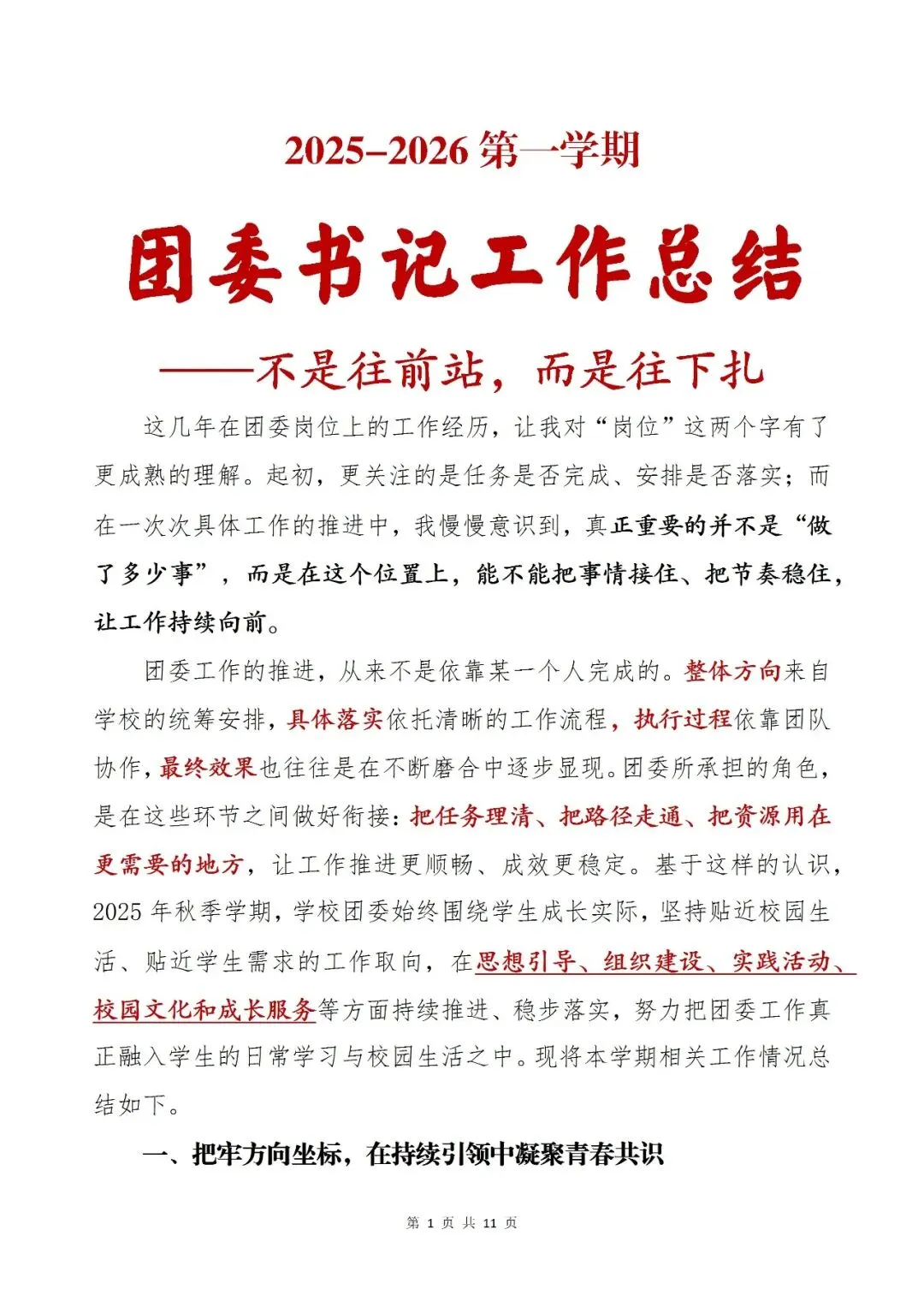 2025-2026第一学期团委书记工作总结:且以青春赴山海,青舟无惧万重山 word版+PPT