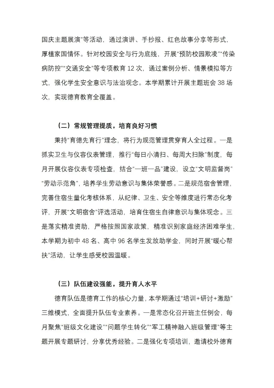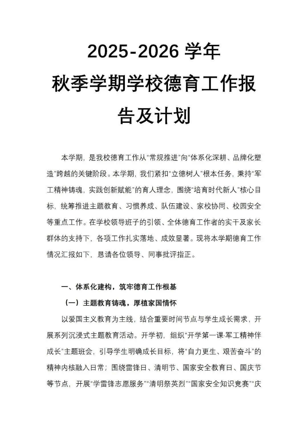 2025-2026学年秋季学期学校德育工作报告及计划 word版