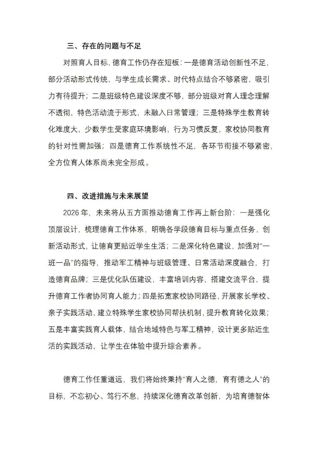 >2025-2026学年秋季学期学校德育工作报告及计划 word版