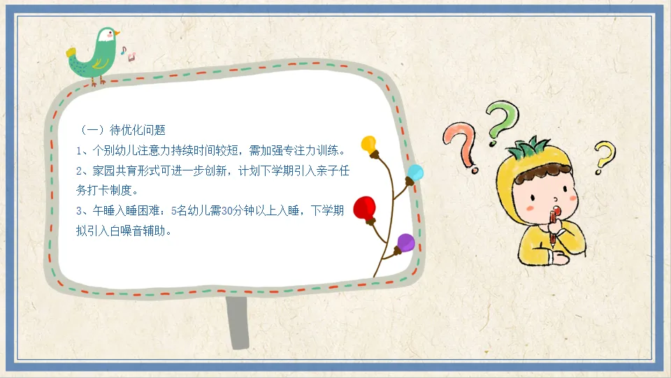 >幼儿园大班班务工作总结汇报PPT