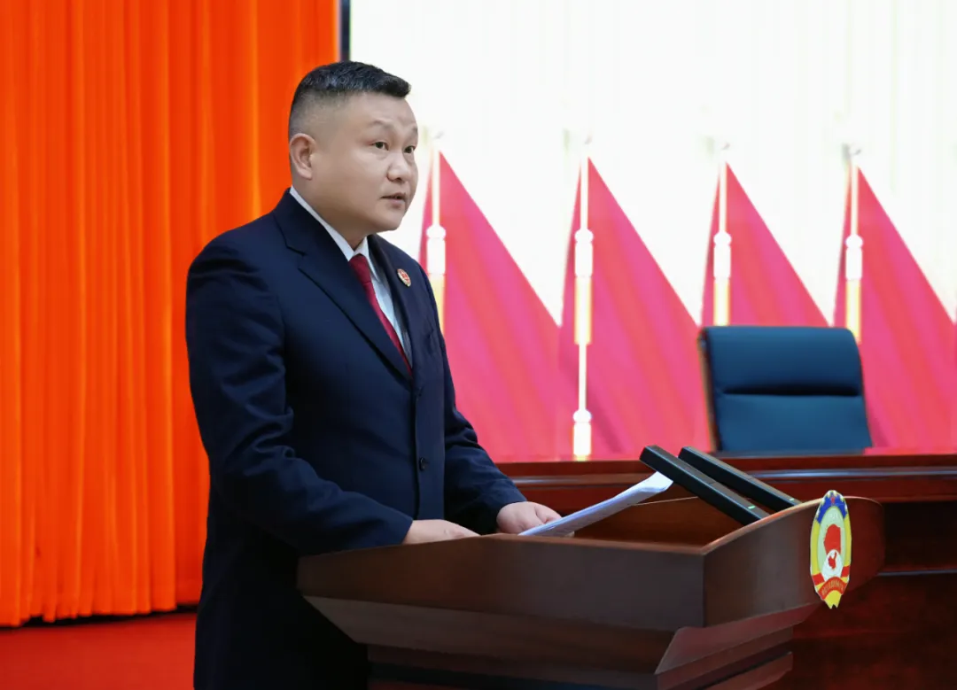 2026年1月14日,大通湖区人民检察院党组书记、检察长曹金辉在大通湖区第三届政协委员第五次全体会议上作检察工作报告。
