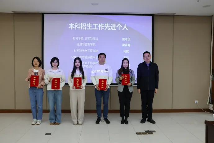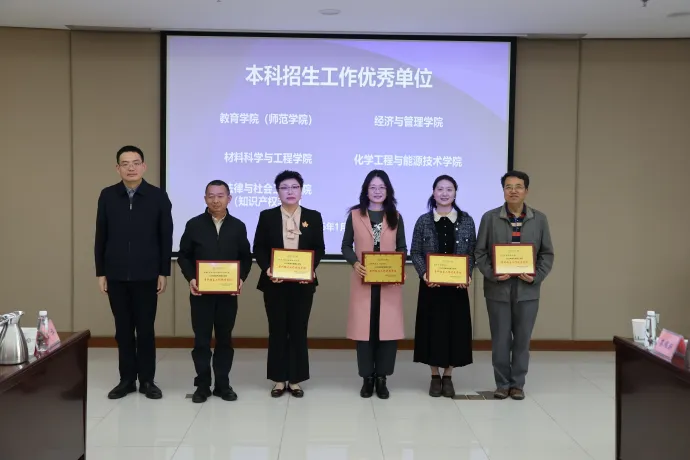会上,对2025年招生宣传工作表现突出的单位和个人进行了表彰,经考核,对5个优秀单位和5位先进个人予以表彰。副校长徐勇军为获奖单位代表及先进个人颁发荣誉证书,向他们的辛勤付出与突出表现表示祝贺。