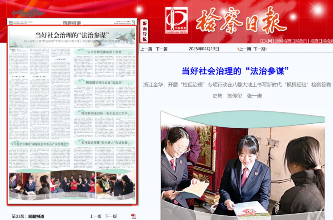 👉 检察日报整版 | 浙江金华:开展“检促治理”专项行动在八婺大地上书写新时代“枫桥经验”检察答卷