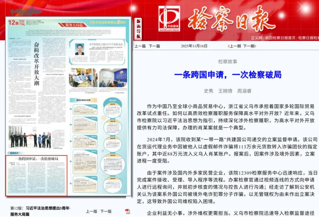 👉 检察日报丨浙江义乌:融入涉外法治大协同格局,依法深化涉外检察履职实践