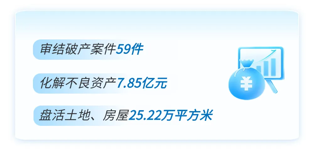 深化府院协调联动,依托区政府搭建的招商引资平台,召开专题会办会18场,助推3家企业重整脱困、重焕生机,盘活有效资产1.18亿元。以“重整式执行”助某环境科技公司脱困重生,该案入选江苏法院“执破融合”典型案例,在全国法院“执破融合”工作现场会上作案例交流,全省唯一。