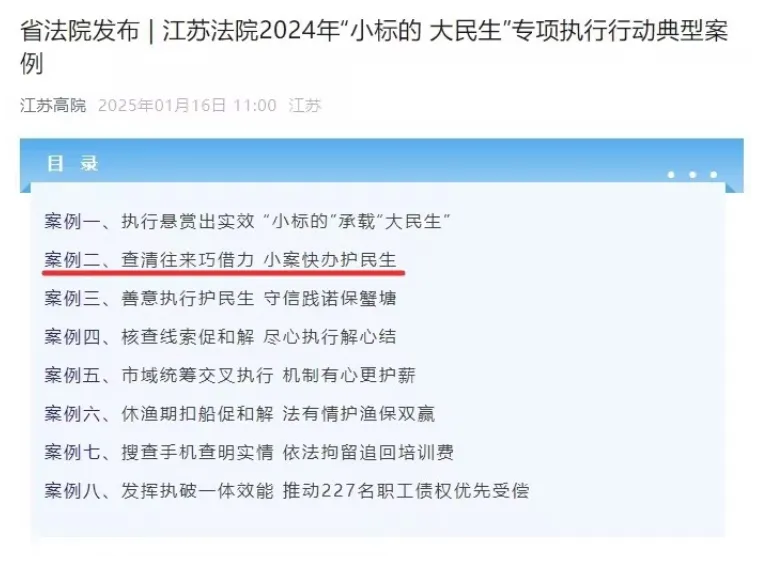 “深查公司业务往来7天兑付薪资案”入选全省法院“小标的 大民生”典型案例,“‘执破衔接’兑付51名工人薪资案”入选全国法院治理欠薪执行典型案例。