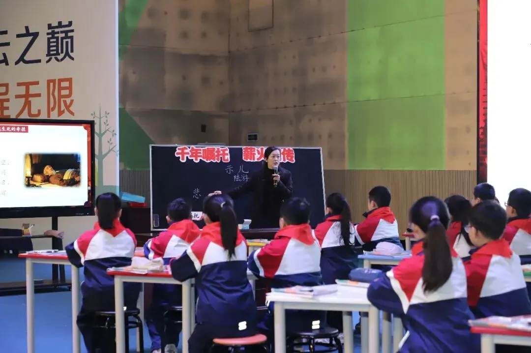 会议伊始,精彩的微课展示环节拉开序幕。萍钢小学王娟老师带来“思政+语文”融合课例,以陆游的经典诗作为载体,将家国情怀的思政内涵与诗词赏析的语文素养培养深度融合,在声情并茂的讲解与层层递进的互动中,实现了价值引领与语言训练的有机统一,赢得现场阵阵掌声。区专职教研员团队现场展示集体备课全过程,以真实课堂课程切片为切入点,精准剖析教学中的理答困境,随后创新性引入“盲盒题库”机制,现场抽取题目展开高效研讨与答题演练,全程展现教研工作的专业深度、协作智慧与创新活力,为一线教师提供可借鉴、可复制的教学研讨范式。