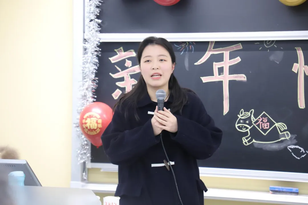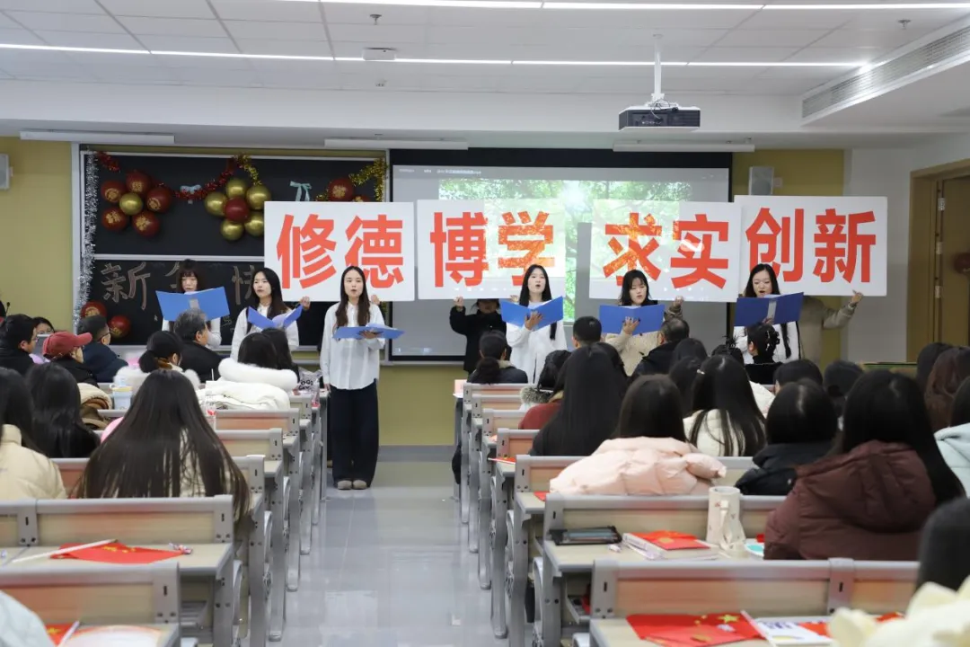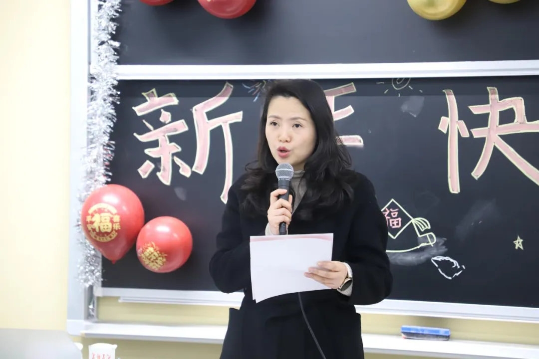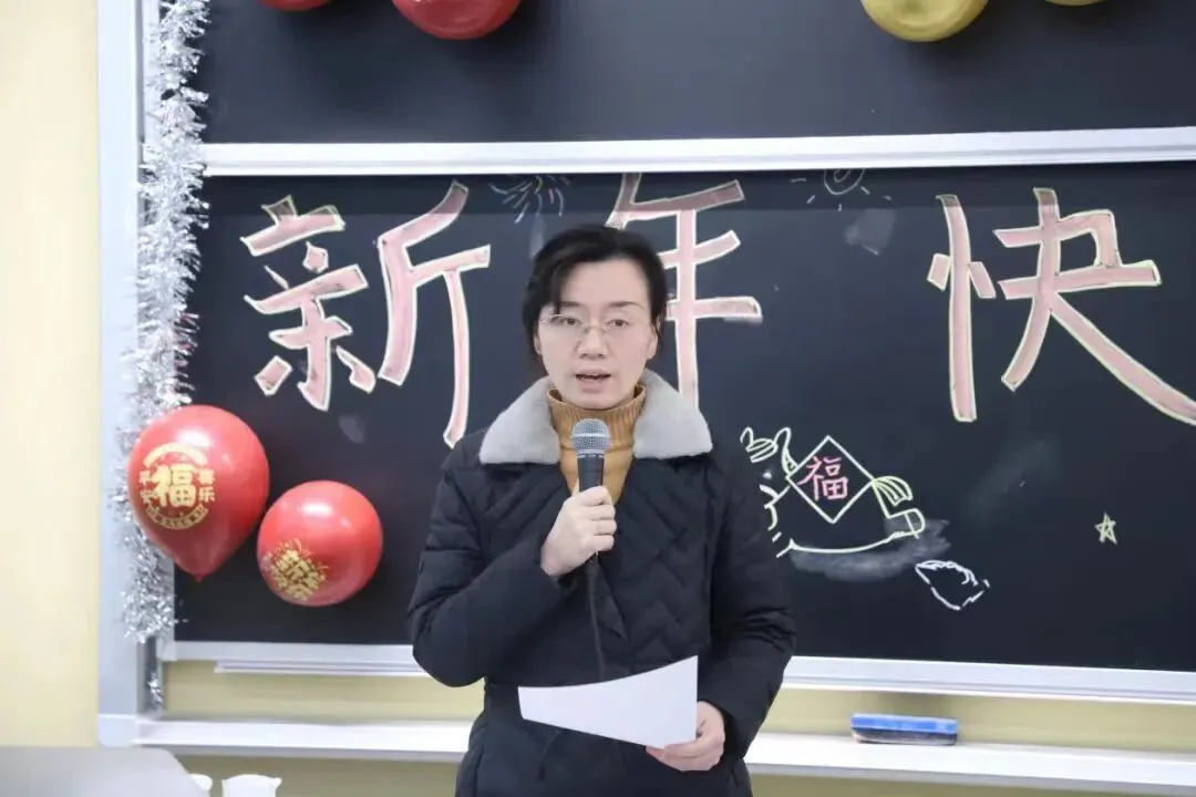 谈娅书记宣读《马克思主义学院关于表彰2025年度科创文体获奖者的通报》,表彰在科技创新与文体活动中涌现的优秀学子。