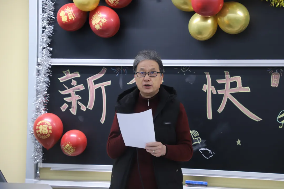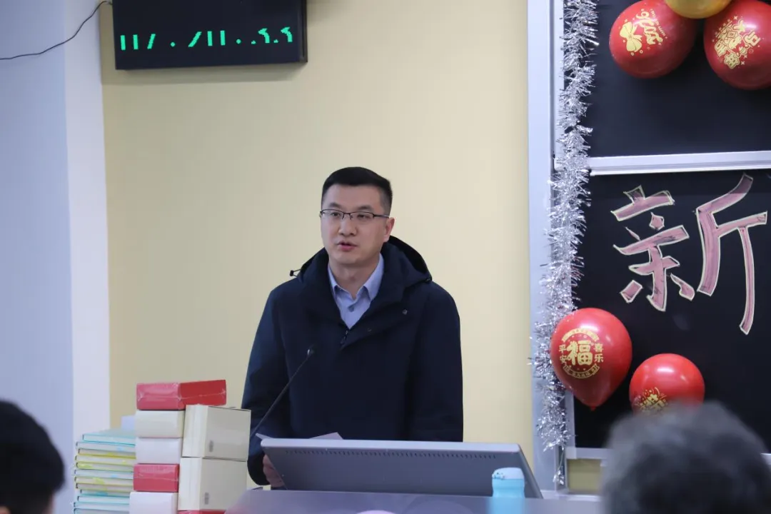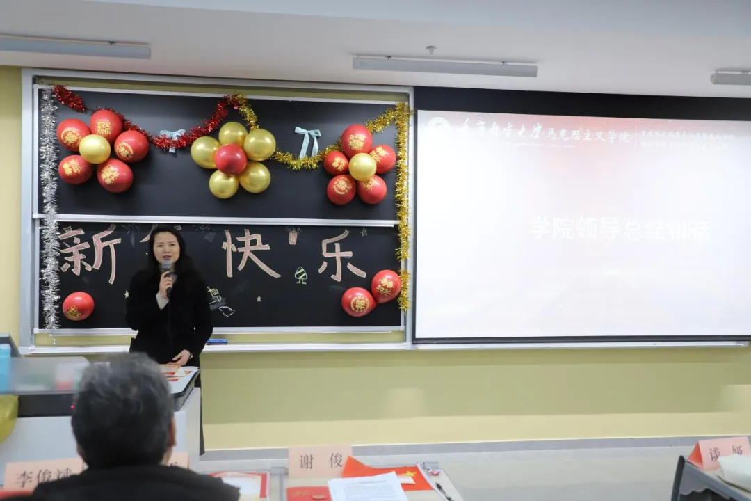 代金平老师宣读《马克思主义学院关于表彰2025年各类先进集体和个人的通报》,对年度表现突出的集体与个人予以表彰。