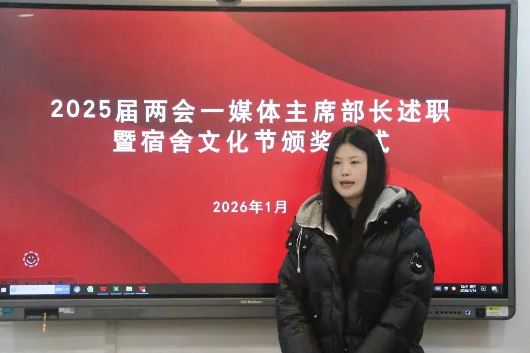 会上,两会一媒体各主席、部长依次开展述职,回顾了本学期工作中的工作举措、履职成效,分析了存在的问题,并针对不足提出了下一步工作计划。从思想反省到活动落地,每一份述职都凝聚着责任与担当,彰显出学院学生干部求真务实、奋勇争先的精神风貌。