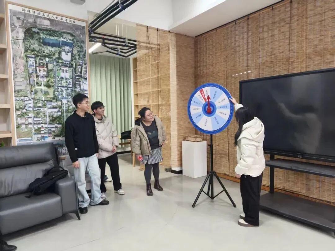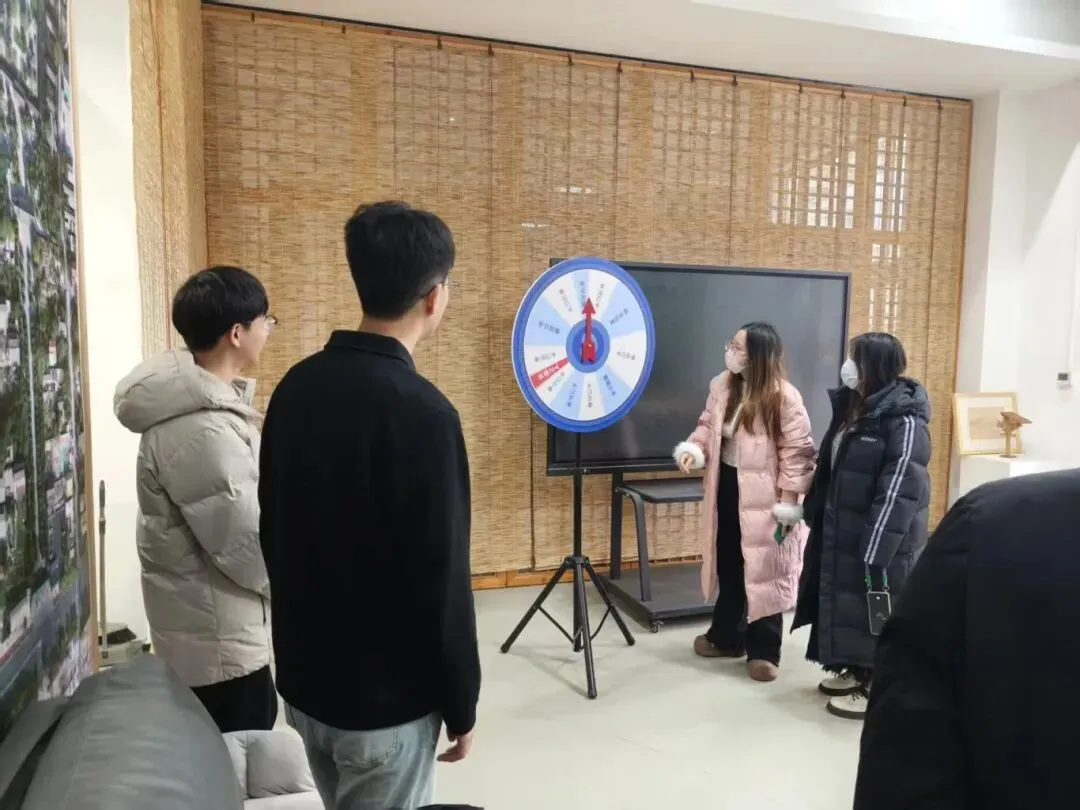 随后进入工作室抽奖环节,同学们陆续上台进行转盘抽奖,奖品设置带有拓印等logo的学习布袋、笔记本、钢笔等学习用品,同学们积极热情的参与活动,活动现场氛围十分活跃。