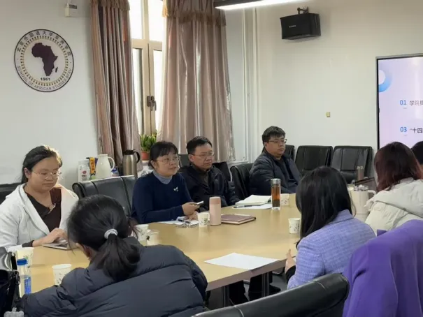2026年1月7日下午,非洲学院召开“十四五”工作总结会暨“十五五”规划研讨会。会议由非洲学院副院长赵磊主持,非洲学院党总支书记、院长李洪峰,党总支副书记王昊及全体教职工参会。