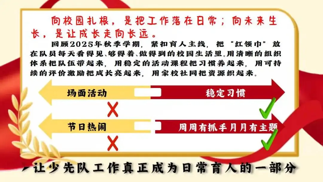 2025年秋季学校少先队工作总结ppt:向校园扎根,向未来生长。