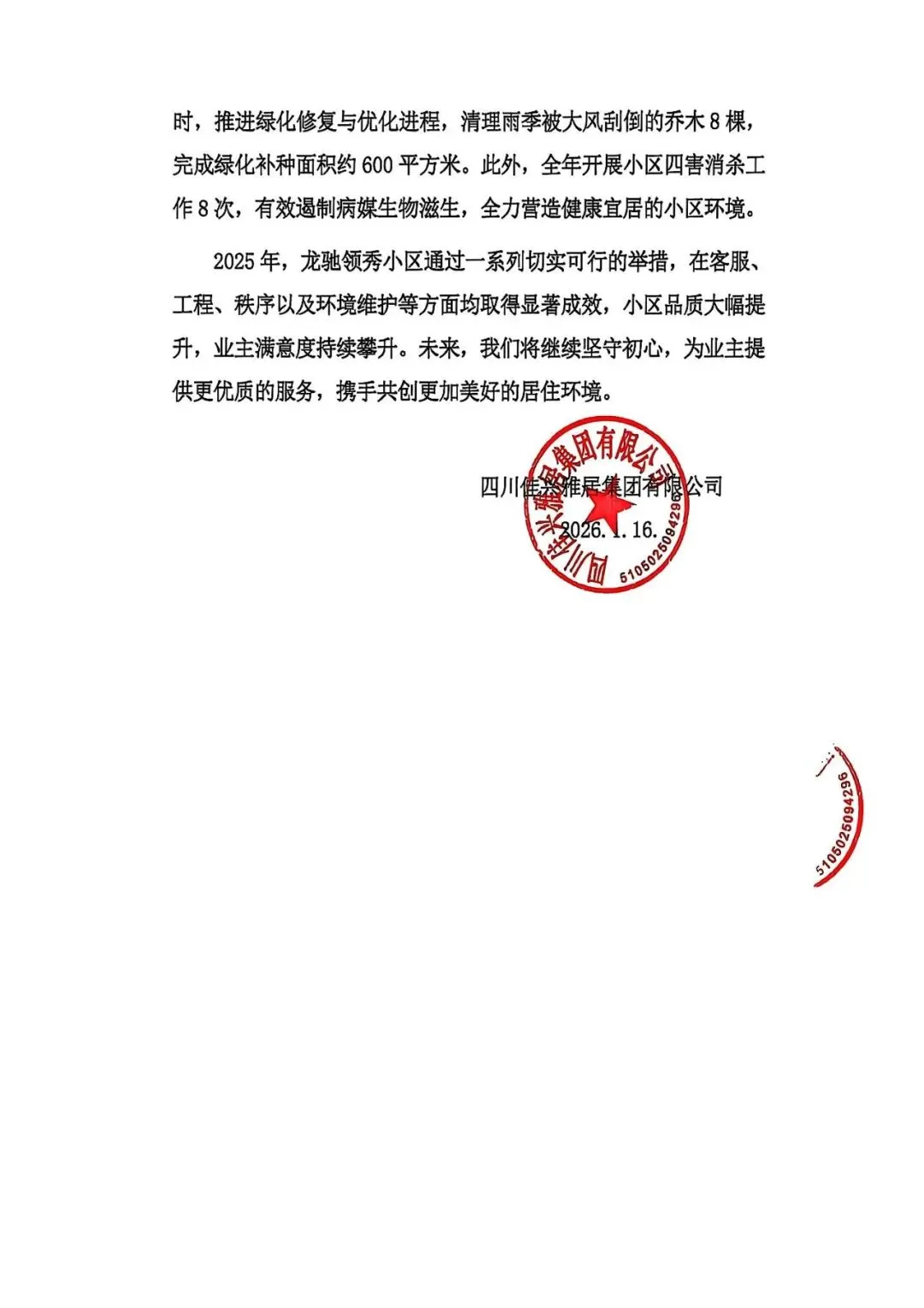2025年度龙驰领秀小区物业服务工作总结