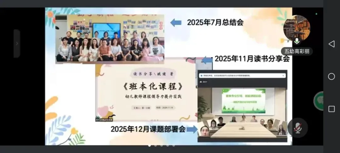 高彩丽(一组组长):聚焦活动组织与能力提升,本学期成功统筹7月总结会、读书分享会、课题部署会3场核心活动,尤其是12月3日的课题开题会获北京专家专业肯定,为课题推进明确方向。组长从活动参与者转型为组织者,在领导力、系统思维与资源整合能力上实现质的突破,提出未来将借助外部专业智慧,引领团队走“向下扎根、向上生长”的专业发展之路。