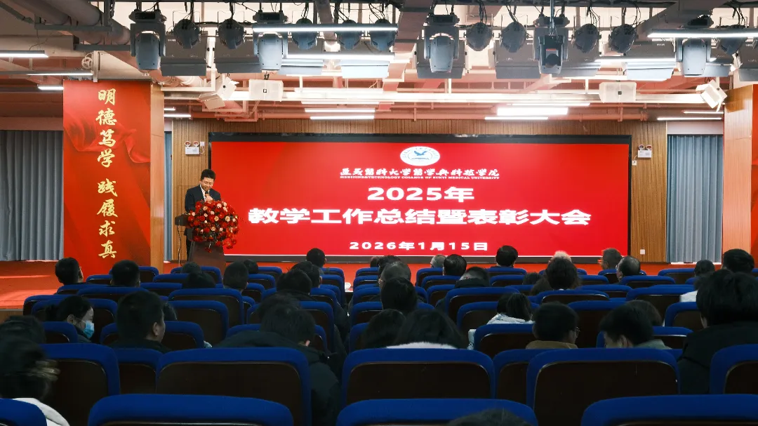 2026年1月15日,我校在图书馆报告厅召开2025年教学工作总结暨表彰大会。学校领导班子全体成员、各职能部门和二级学院负责人、全体教师及学生代表齐聚一堂,总结教学成果,表彰先进典型,谋划未来发展。大会在庄严热烈的气氛中拉开序幕。