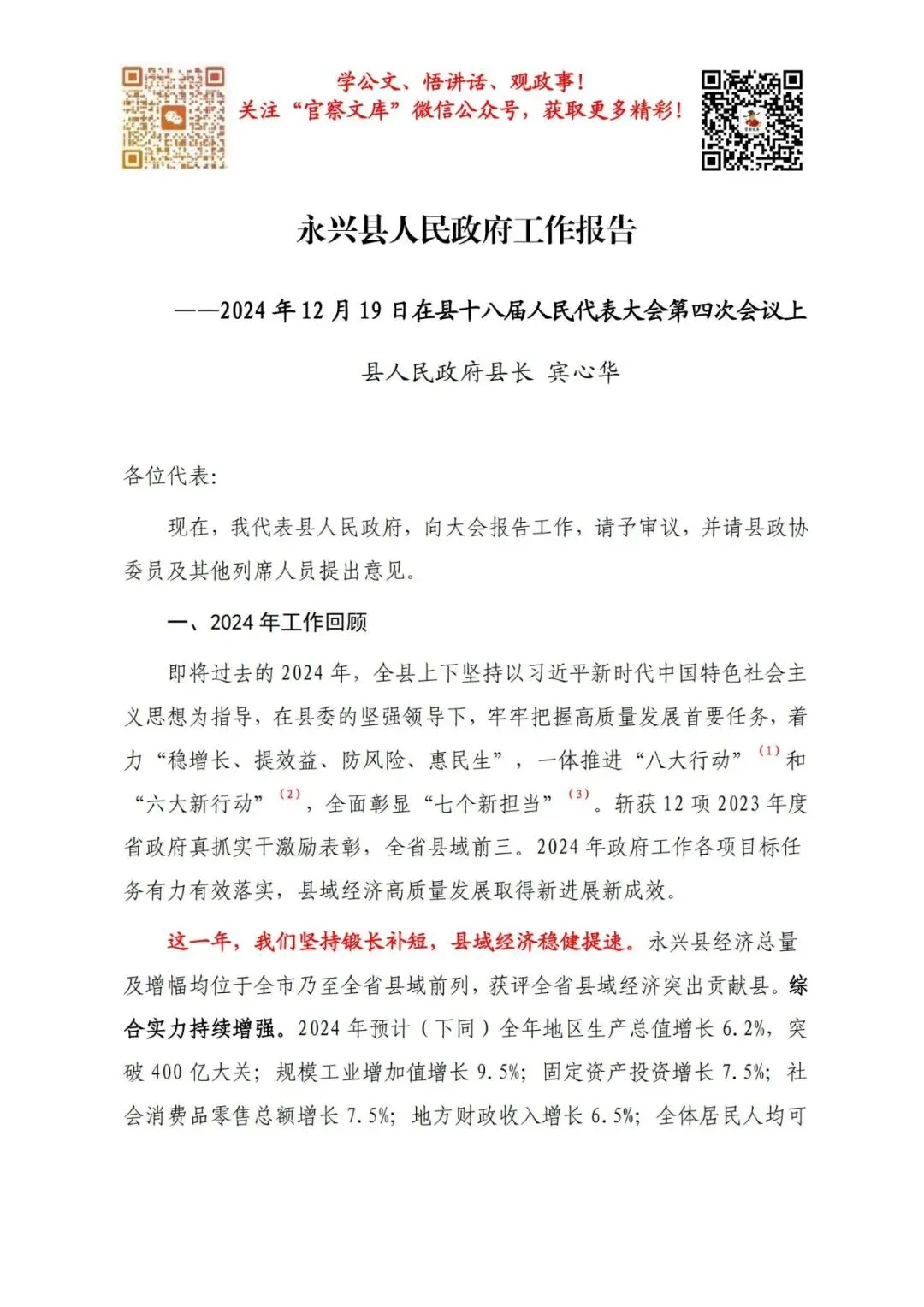 【学习范本】县政府工作报告