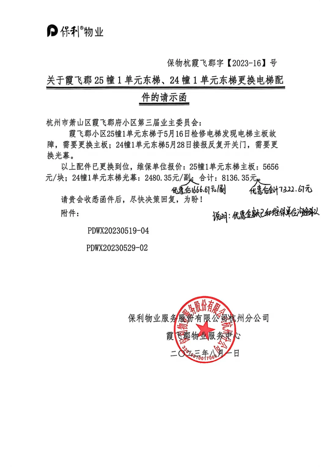 1. 电梯更新改造工程:2023年尚无国债支持政策,针对原蒂森电梯故障率高、维修成本高昂等问题,业委会牵头组织业主大会,高票通过授权更换电梯的决议。通过公开招标方式,整合小区自有经营性收益及保利地产、保利物业支持资金,将原有蒂森电梯更换为西奥电梯。面对电梯这个全新课题,业委会委员主动学习专业知识,逐字逐句推敲招标文件与采购合同,常研究至深夜,全力规避各类风险。改造过程中,面临的施工难度远超预期,业委会委员们主动牺牲休息时间,多次与电梯厂家负责人磋商改造方案,深入施工现场。施工期间,每日跟踪新电梯安装进度及老电梯运行状态,接到业主反馈问题后,第一时间带领技术团队上门排查,全程跟进问题解决,确保改造工程高质量完成。