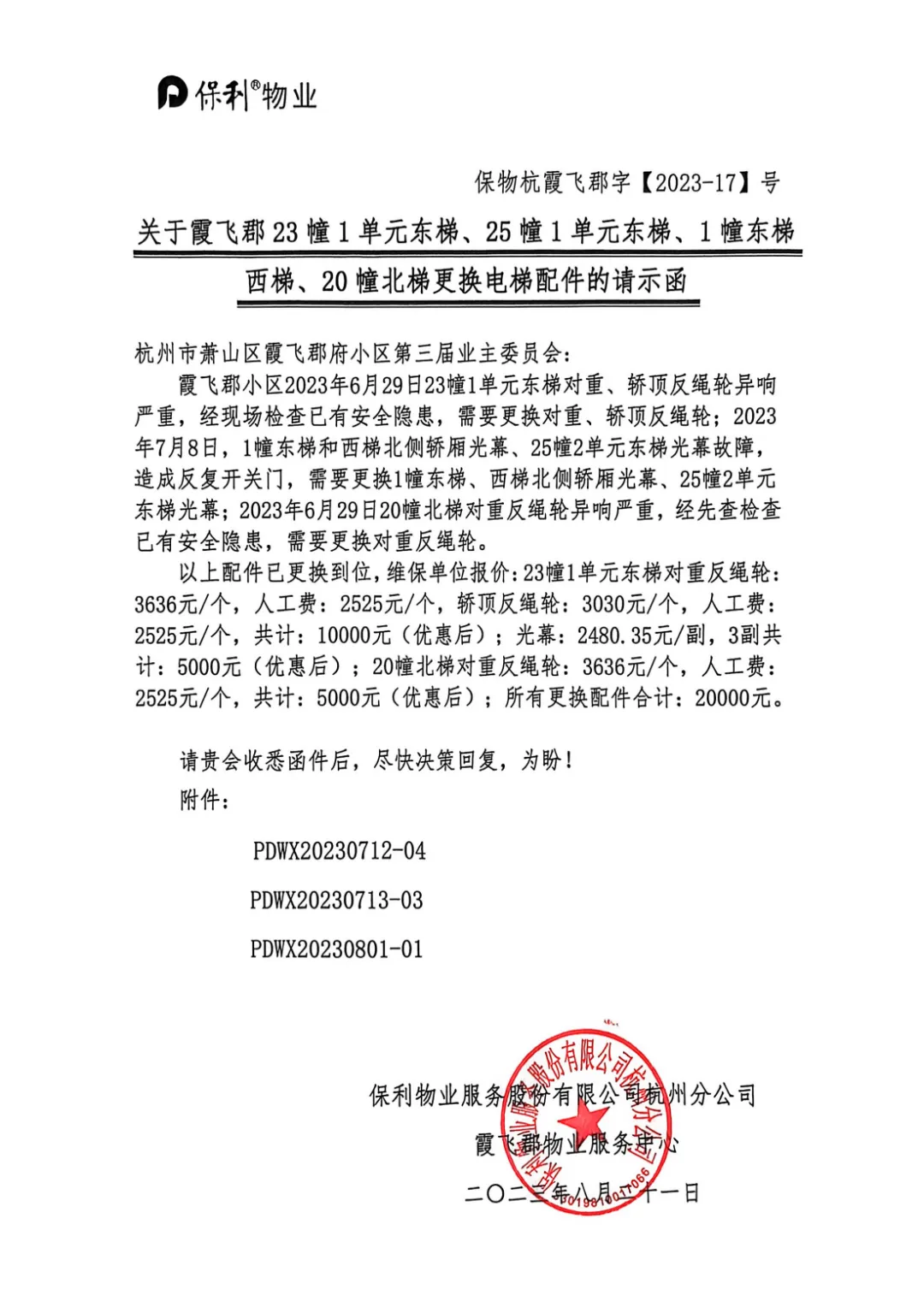 1. 督促兑现续聘承诺:针对业主反映强烈的地下室电梯厅环境差问题,业委会在与保利物业洽谈续聘合同时,将电梯更换、电梯厅装修纳入一揽子提升方案,督促物业落实整改。目前已完成破旧木质防火门更换为钢制防火门、电梯厅顶部安装铝方通吊顶、墙面重刷乳胶漆、地面重做地坪漆等工作。同时,响应排屋业主需求,督促物业每年开展一次外立面清洗工作。遗憾的是,因保利物业机构庞大、流程繁琐、效率偏低,部分项目仍未完工,且工程跨度长,存在前期工程完工后已出现老化、后续工程尚未开工的问题,业委会已多次督促物业加快推进,后续请业主、物管会及第四届业委会及时跟进。
