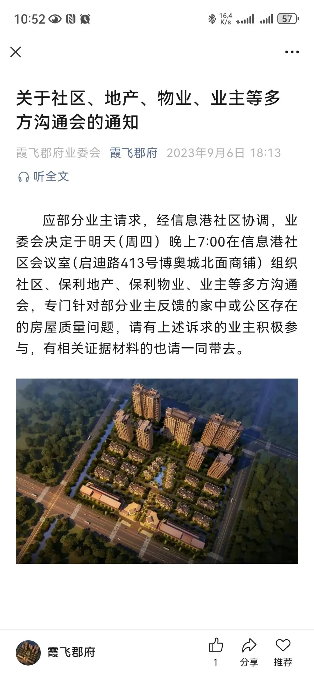 亲爱的霞飞郡府业主: