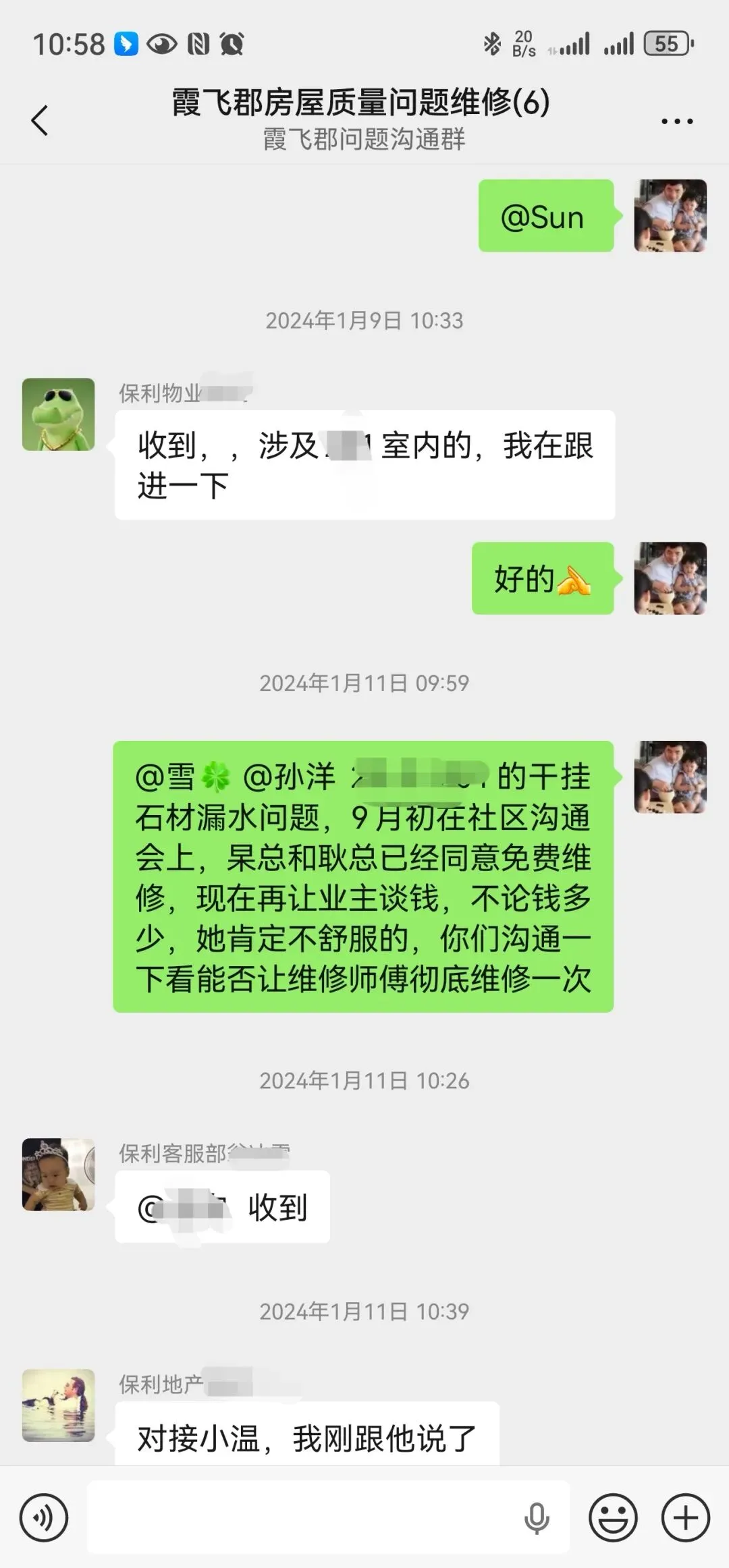 1. 化解渗漏水顽疾:针对小区部分业主户内渗漏水、地产与物业推诿扯皮的历史遗留问题,业委会成立后第一时间督促物业全面排查统计渗漏情况,于2023年9月7日在社区会议室,组织召开社区、业委会、保利地产、保利物业及业主代表多方协调会,积极督促地产与物业履行社会责任,最终推动一次性解决所有渗漏水历史问题,切实保障业主居住权益。