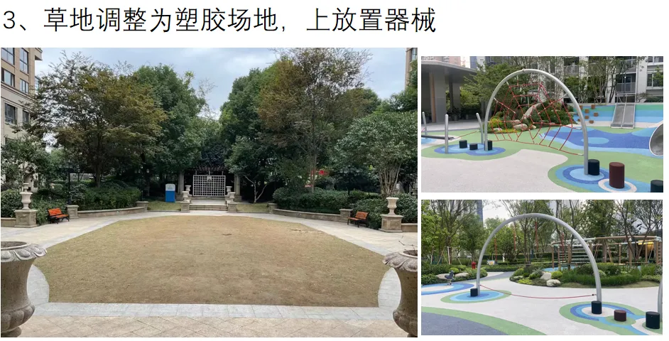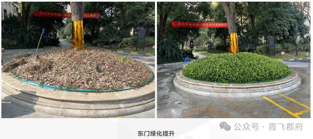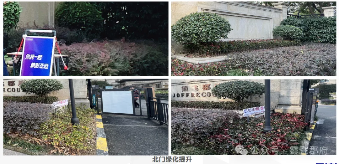 4. 争取优居焕新工程:业委会立足提升小区品质,主动与保利地产沟通对接,结合保利地产央企社会责任,争取优居焕新工程向霞飞郡府倾斜。最终由保利地产出资,对小区部分区域绿化进行优化升级,并将25幢前广场改造为塑胶场地。原本计划增设健身器械,后综合考量23幢前已有相关器械配置,为避免资源闲置,最终未额外增设,确保资金用在刀刃上。