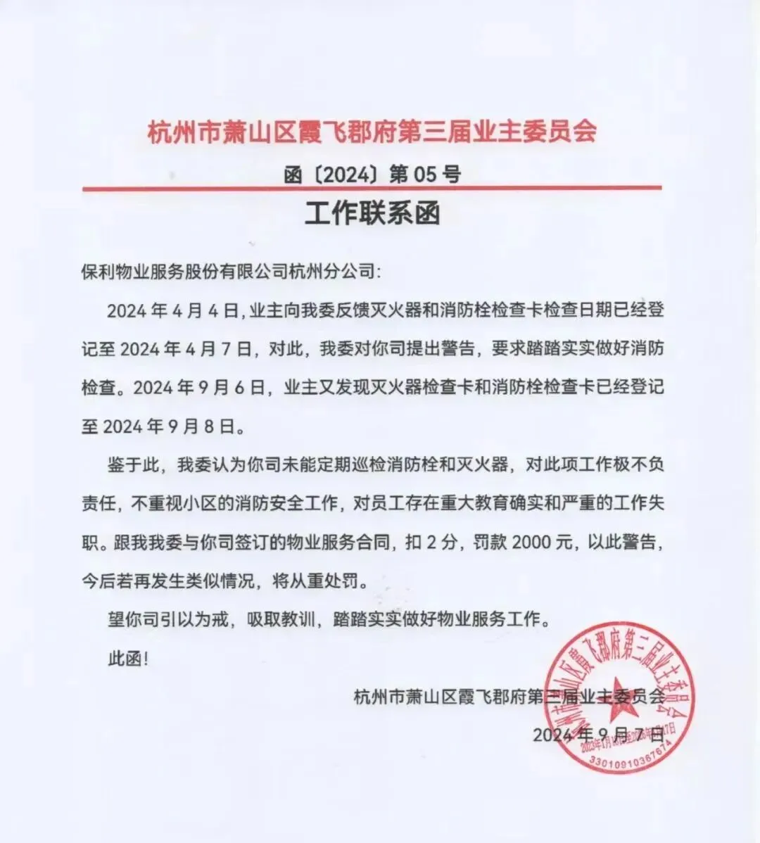 2. 消防设施设备更新改造:因小区消防设施设备年久失修、维护不当,消防系统接近瘫痪状态,严重威胁业主生命财产安全。业委会经集体表决,决定对消防设施进行全面排查及大修,于2024年下半年启动物业维修资金申请流程,目前项目已竣工并通过验收。初始排查显示维修费用超200万元,为严控成本、节约资金,业委会反复斟酌维修清单,最终确定将约40万元的应急逃生系统维修交由保利物业负责,费用由物业自行承担;剩余部分以110万元为最高限价公开招标,经综合评分选定中标单位,最终中标价978000元(几家投标中最低报价),为小区节省大额开支。施工期间,经业委会表决同意,新增双电源切换系统及风机更换项目,进一步完善消防保障。此外,2023年按规定完成灭火器充粉工作,2024年因交付满10年、灭火器瓶体达到使用年限,统一更换全部灭火器,筑牢消防安全防线。