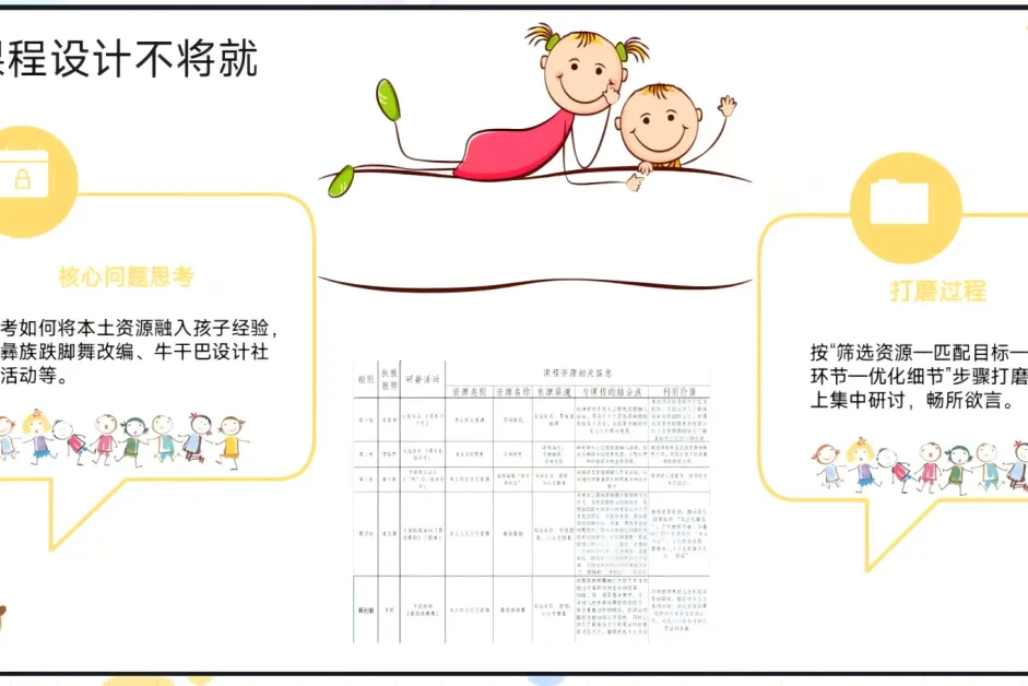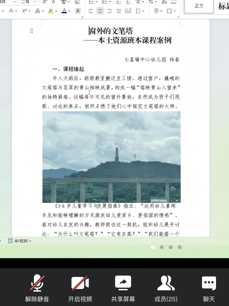 紧接着,杨春老师以七星镇中心幼儿园为例,分享了园本课程实践探索的路径。她从一张照片出发,介绍了文笔塔系列课程开发的背景与推进动态,同时,她分享了课程实施中关于内容与幼儿兴趣匹配等问题的解决思路,强调园本课程建设需立足本园实际、倾听幼儿声音。两位老师的分享各有侧重,为学员带来深刻启发,激发了课程设计创新热情。