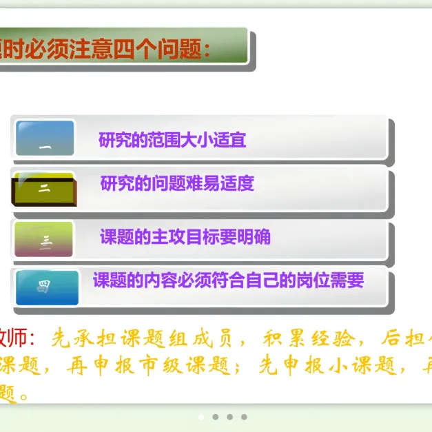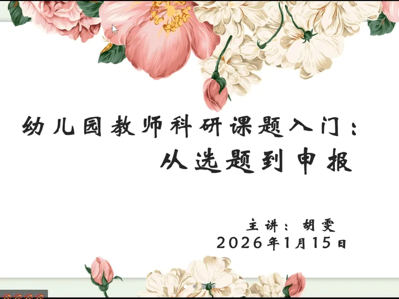 会议核心环节,胡雯老师开展《幼儿园教师科研课题入门——从选题到申报》专题讲座。她从当下教师对课题研究的认知感受切入,点出部分教师存在的“畏惧心理”及科研意愿强但缺乏方法指导的现状,结合学员科研实际,精准指出选题针对性不足、研究方向不明、方法单一、申报材料不规范等共性问题。