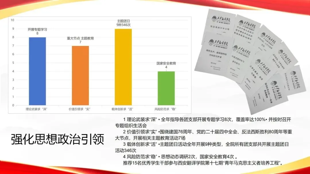 为全景展现2025年度我校共青团工作的生动实践,团团将带领大家,逐一回顾各团总支过去一年在思想引领、组织建设、实践服务与成长赋能等领域的深耕足迹。期待通过这份年度答卷,凝聚奋斗共识,彰显青春风貌,共同记录新征程上西译青年挺膺担当、砥砺前行的坚实身影与铿锵步履。