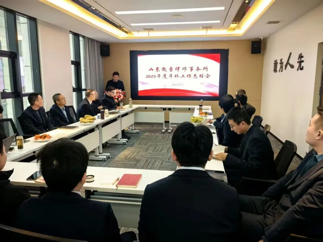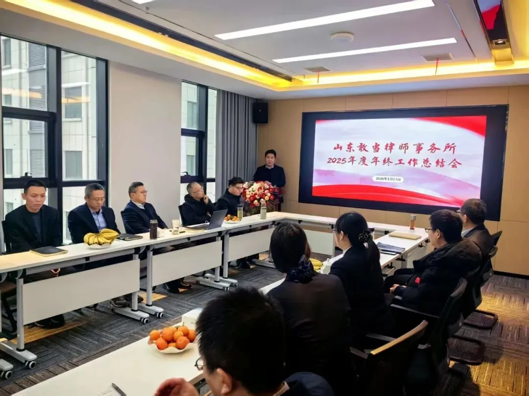 岁序更替,华章日新。为全面回顾2025年工作成果,谋划2026年发展新篇,山东敢当律师事务所于2026年1月17日上午隆重召开2025年度工作总结大会。会议由党支部书记辛彩春主持,娄立斌主任、全体合伙人及律师同仁齐聚一堂,总结过往,共绘未来。