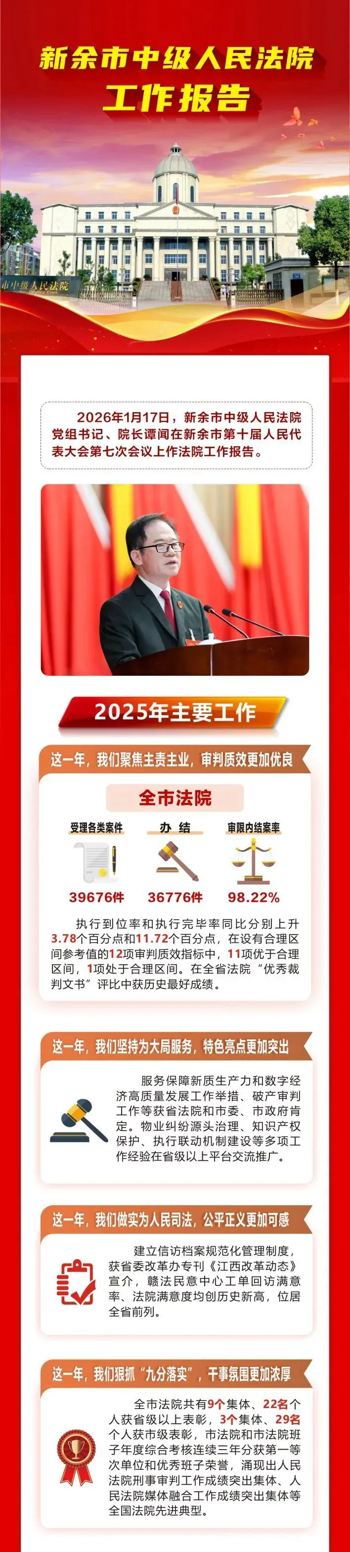>【向人民报告】要点速览!2025年新余市中级人民法院工作报告