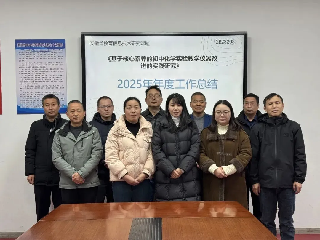 2025年12月24日正值寒意嗖嗖的冬季,8点时分,郎溪县实验初中二楼的小会议室室内, 2023年安徽省教育装备课题《基于核心素养的初中化学实验教学仪器改进的实践研究》(立项编号:ZB23203)课题组安排在早上8点准时召开2025年度课题工作总结会议。课题组全体成员都冒着早晨的寒冷,不辞辛苦地从四面八方赶来齐聚一堂,积极地参加了此次活动,会议由实验初中化学备课组组长成禄平老师主持。