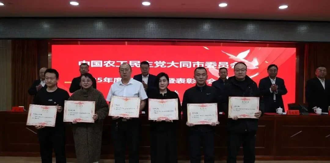 2026年1月16日,农工党大同市委会召开2025年度工作总结暨表彰大会。市委会班子成员、市委会委员、内部监督委员会委员、各支部主委、获奖党员、新党员等80余人参加。中共大同市委统战部副部长王继武、驻中共大同市委统战部纪检监察组组长苗玉彬应邀出席会议。