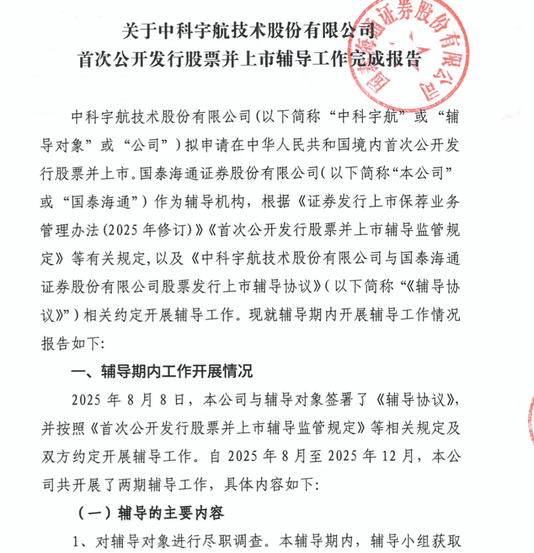 2025年8月12日提交上市辅导备案,由国泰海通证券股份有限公司辅导。2026年1月17日完成提交了辅导工作验收报告,看起来要跟蓝箭航天争夺第一股。