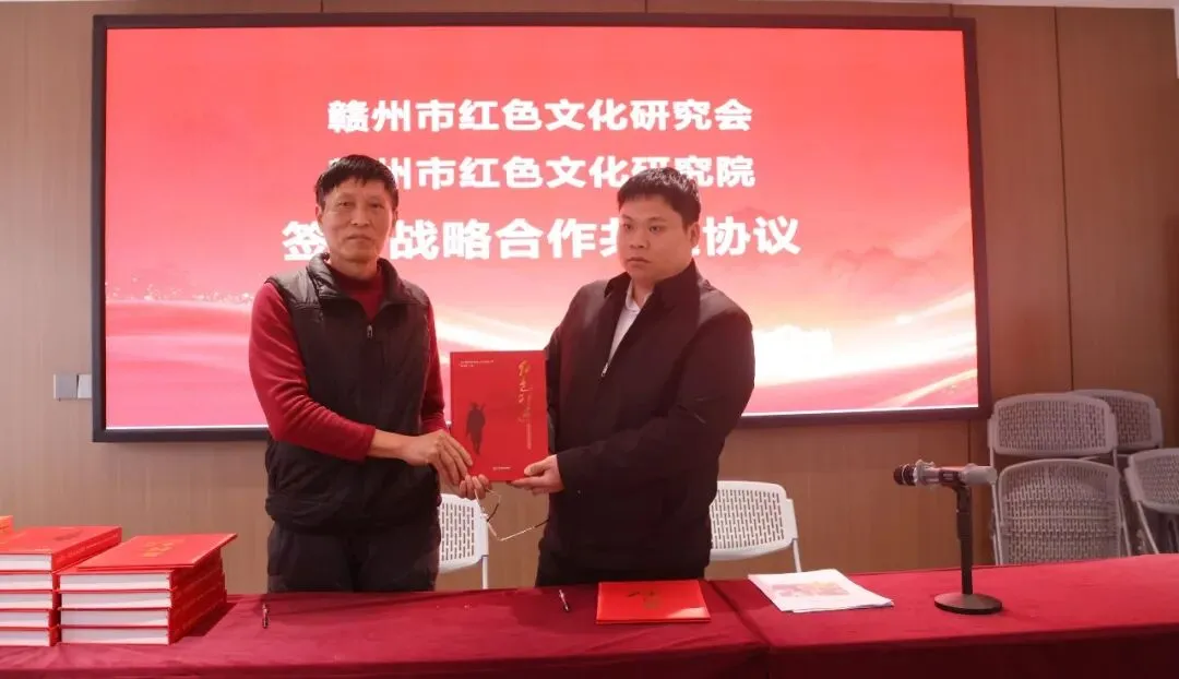 会议共完成七项议程:赣州市红色文化研究院党支部书记夏武林致欢迎词;刘冬春、袁尚贵分别现场讲授《薪火梓坑永放光芒》《敬读长征向未来》红色课程;卜利民总结2025年工作、提出2026年工作思路;赣州市社会科学界联合会主席刘万春讲话,赣州市红色资源保护发展中心主任廖东根讲话;赣州市红色文化研究会与赣州市红色文化研究院签订战略合作协议、互赠党史书籍;宁都县红色文化研究会会长、本会第二届常务理事廖海鸣和赣南医科大学苏区卫生与健康中国建设研究中心首席专家、本会专家组成员刘善玖代表团体会员单位发言;全体合唱《没有共产党就没有新中国》《歌唱祖国》。