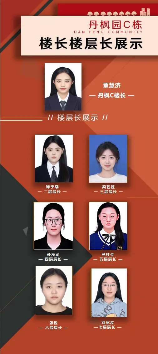 在楼长、楼层长的带领下,社区建设得更加井井有条。同时,在正式担任楼长层长后,他们积极发挥作用,建立楼群、层群,在天气骤变时提醒同学们添加衣物,在有器件损坏时及时保修提醒……让在丹枫居住的同学们的生活更加便捷和谐。