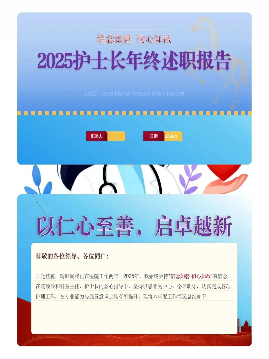 岁末回首,2025 年的护理工作已画上句点。“信念如磐,初心如故”,这一年,我始终带着对护理事业的敬畏与热忱,和团队一起在平凡的岗位上扎实前行。今天不是单纯的工作汇报,而是想和大家一起复盘过往、梳理得失,为明年的工作攒下经验、找准方向。