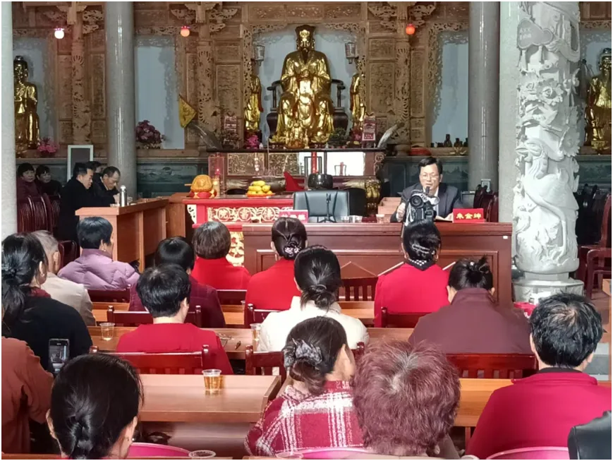教主垂慈,圣光照临!岁序更迭,静美安好!2026年1月18日(农历十一月三十),仙游县三一教协会在鲤城长俸书院召开2025年工作总结会议,全体会长办公成员参加了会议,会议由吴玉先秘书长主持。