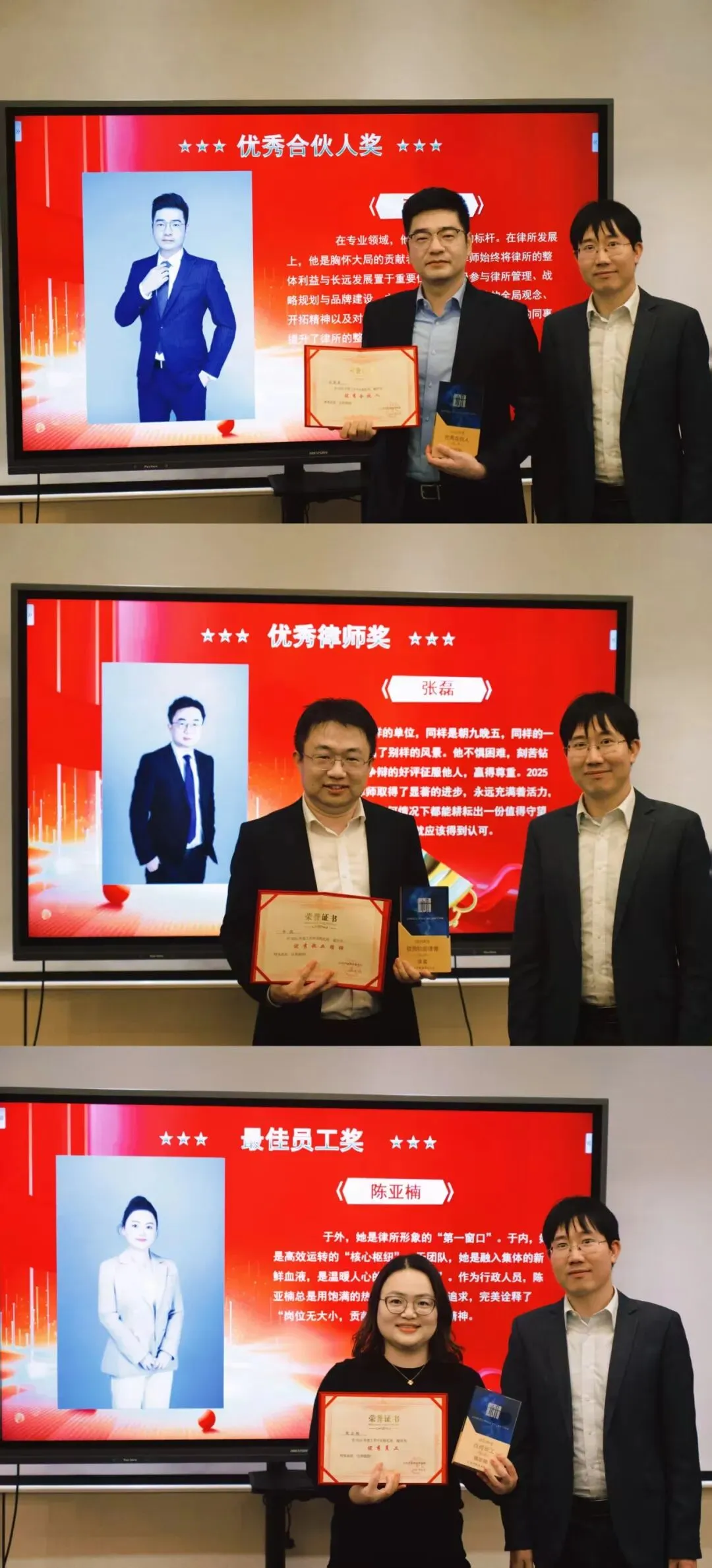 合伙人授牌仪式。律所为陈艳丽、张留豪、姚倩、沈杰四位新晋合伙人举行了正式授牌。体现了平帆所核心团队力量的壮大与“凝心聚力,共筑未来”的传承理念。