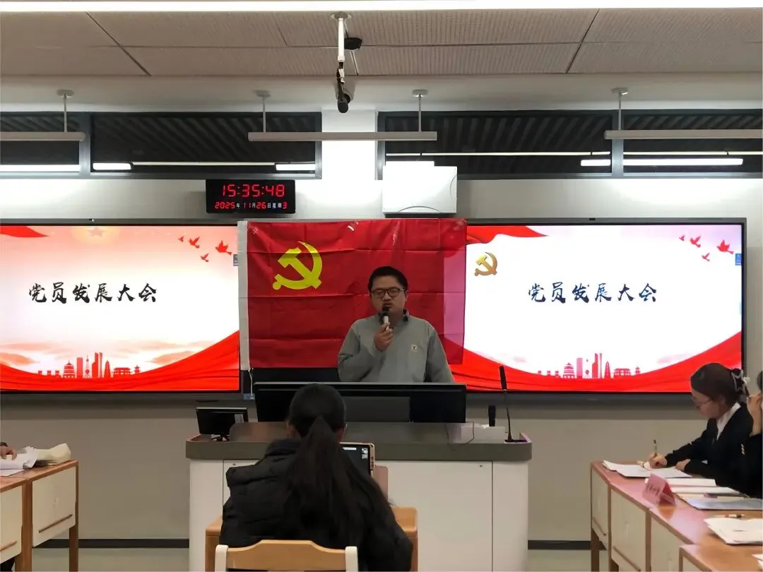 我坚持“控制总量、优化结构、提高质量、发挥作用”的方针,严格规范党员发展全流程。全年组织拟推发展对象面试2批,建立“笔试+面试+日常表现”三位一体考察机制,由支委、党建联系人组成评审小组,从政治素养、学业成绩、群众基础等多维度综合考评,2025年度共发展党员21名,转正预备党员21名,党员队伍结构进一步优化。创新党员教育管理模式,邀请学院领导讲授《学党纪、明底线、守规矩,做新时代合格学生党员》专题党课,我本人为2025届毕业生党员上“最后一次党课”,引导党员坚定理想信念。建立党员量化考核机制,将组织生活参与、理论学习、志愿服务等纳入考核,全年党员参与主题党日活动平均出勤率达95%以上,党员先锋模范作用充分发挥。