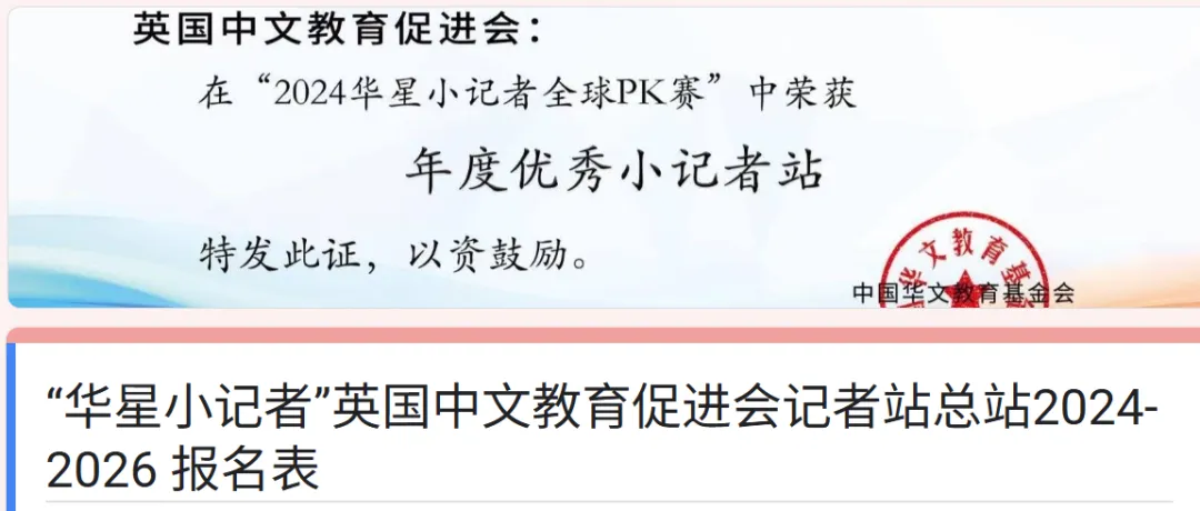英国中文教育促进会华星小记者站总站的发展经历了起步和成长两个阶段。中国华文教育基金会向英国中文教育促进会授牌“华星小记者站总站”。今年,华星小记者的六堂线上辅导课继续由北京广播电视台承办。英国华星小记者们的视频报道在中国华文教育基金会网站、中国华文教育基金会微信视频号、北京时间、央视频、抖音等多个平台播出,不少作品的点击量已超过万次。欢迎大家在华星小记者专题页面浏览小记者们的精彩风采。