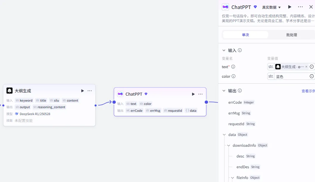 output (String):层级化PPT大纲,传递给ChatPPT插件