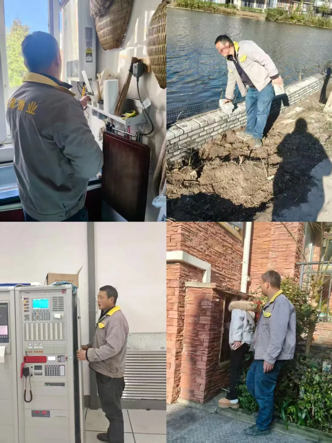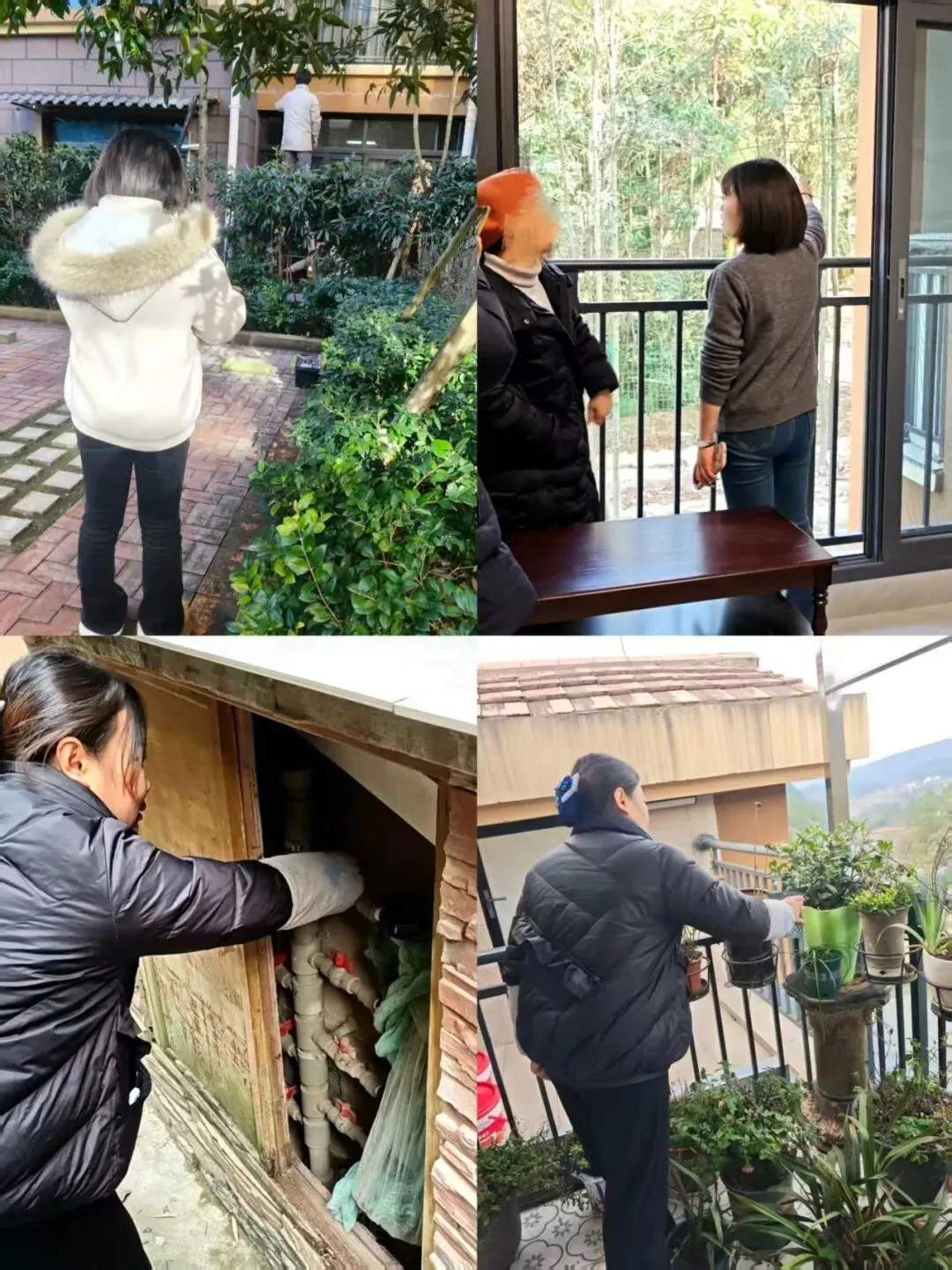 上门查看处理业主报事报修,管家给上山业主开水。