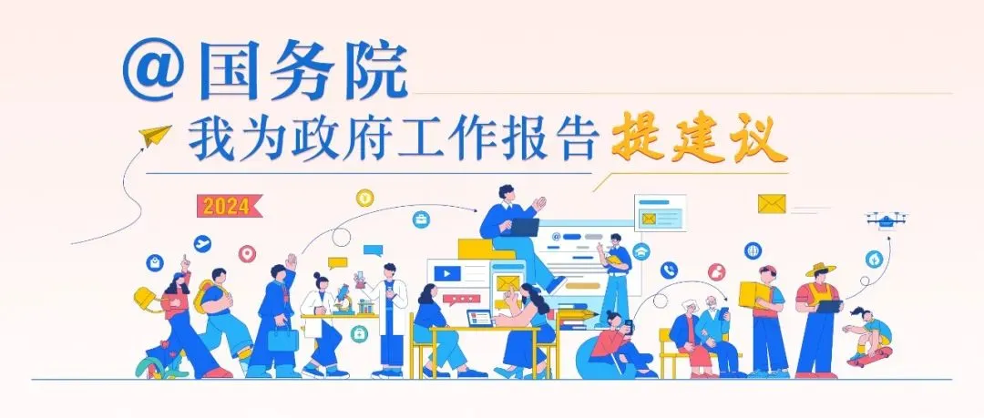 2023年12月14日起,中国政府网联合人民网、新华网、央视网、财新网、凤凰网、澎湃新闻、抖音、知乎等29家网络媒体平台,以及地方部门政府网站,开展2024“@国务院 我为政府工作报告提建议”网民建言征集活动,听取网民对《政府工作报告》和政府工作的建议意见。活动将持续到2024年全国两会。