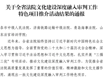 高唐法院在全省法院文化建设深度融入审判工作特色项目推介活动中荣获三等奖(点击阅读)